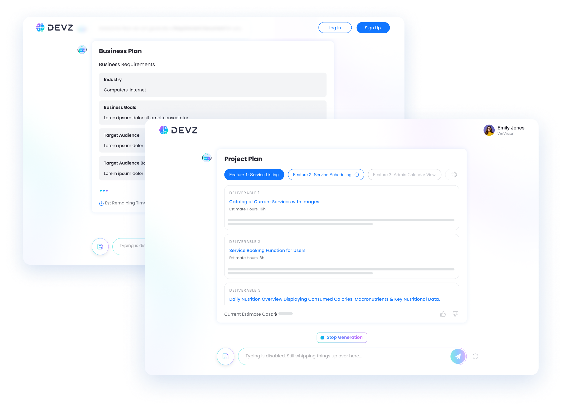 Our state-of-the-art machine learning algorithms will analyze your input and provide you with business requirements in a Business Plan & technical timelines & details in a Project Plan.